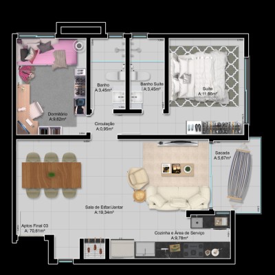 Área Privativa › 70,61m²