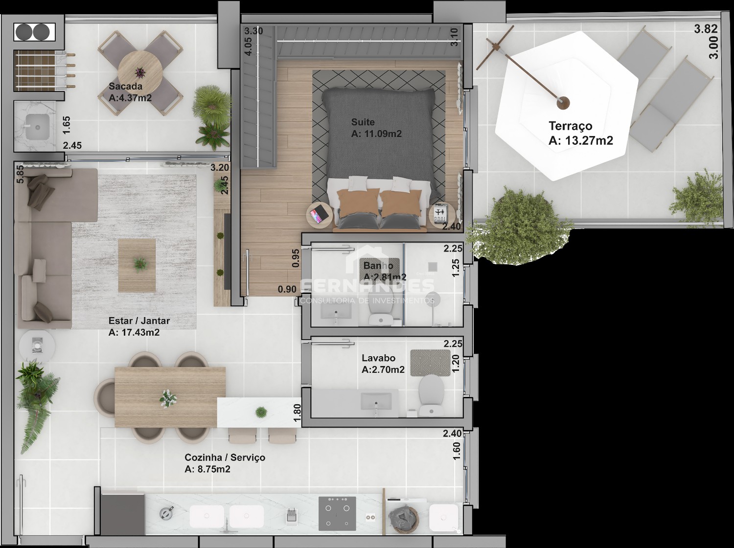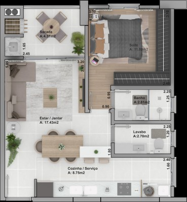 Área Privativa › 54,65m²