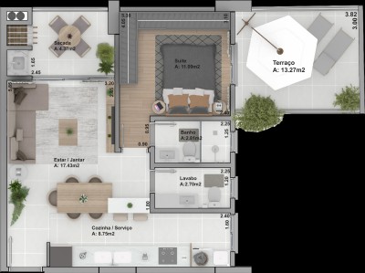Área Total › 87,03m²