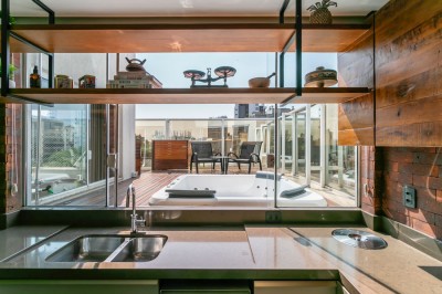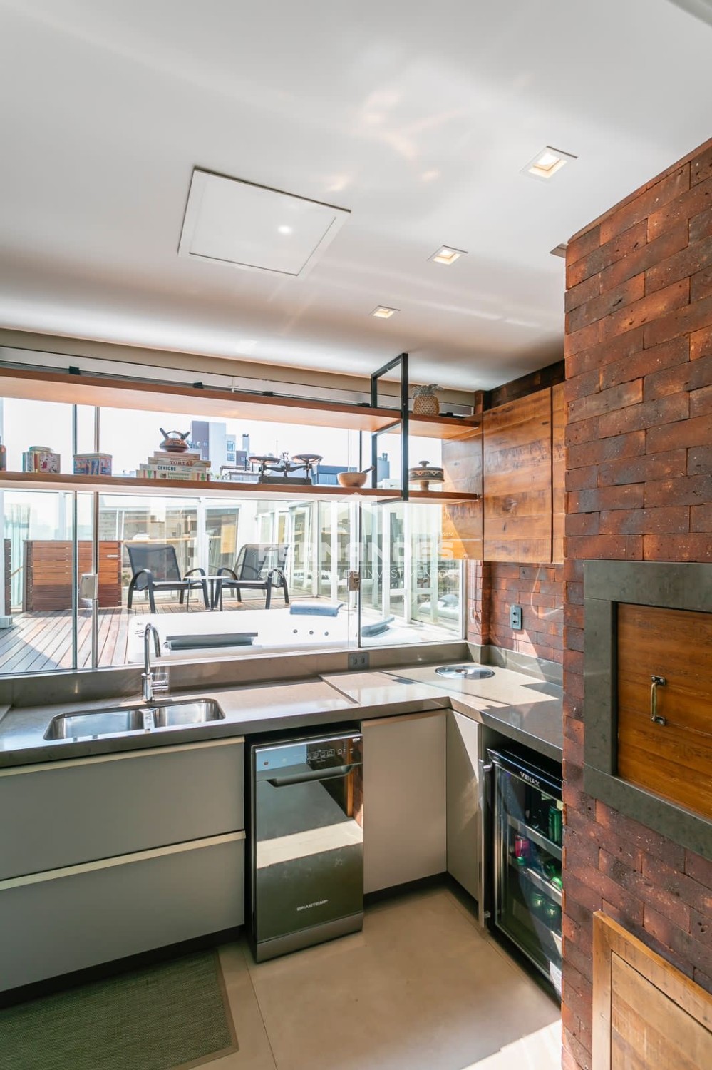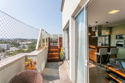 Descrição › Água Quente, Área de Serviço Separada, Área Gourmet, Área Serviço, Área externa com SPA Axell e Deck,, Banheiro Social, Churrasqueira giratória em aço inox, Cozinha, Espera para Automação e home theater, Garagem, Hall de Entrada, Interfone, Jantar e Estar Integrados, Massa Corrida, Medidores Individuais, Pronto para Morar, Rebaixe em Gesso, Sacada Aberta, Sala de Estar, Sala de Jantar, 02 Suítes, sendo uma suíte master com closet e banheiro com cuba dupla, Vista Panorâmica
