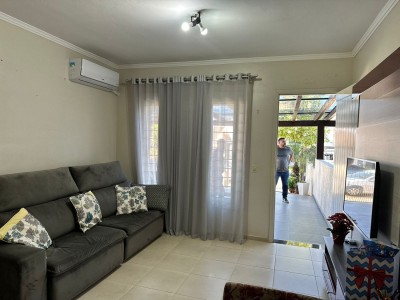 Descrição › Localizado no bairro Montanha, em Lajeado/RS, este sobrado está pronto para morar e oferece todo o conforto que você procura. Com 2 dormitórios, banheiro social, área de serviço separada, churrasqueira, área gourmet e vaga para 2 carros, este imóvel conta com esquadrias em madeira, portão eletrônico e medidores individuais. Além disso, possui uma área privativa de 94,33m² e está mobiliado. Aproveite essa oportunidade e venha conhecer!
