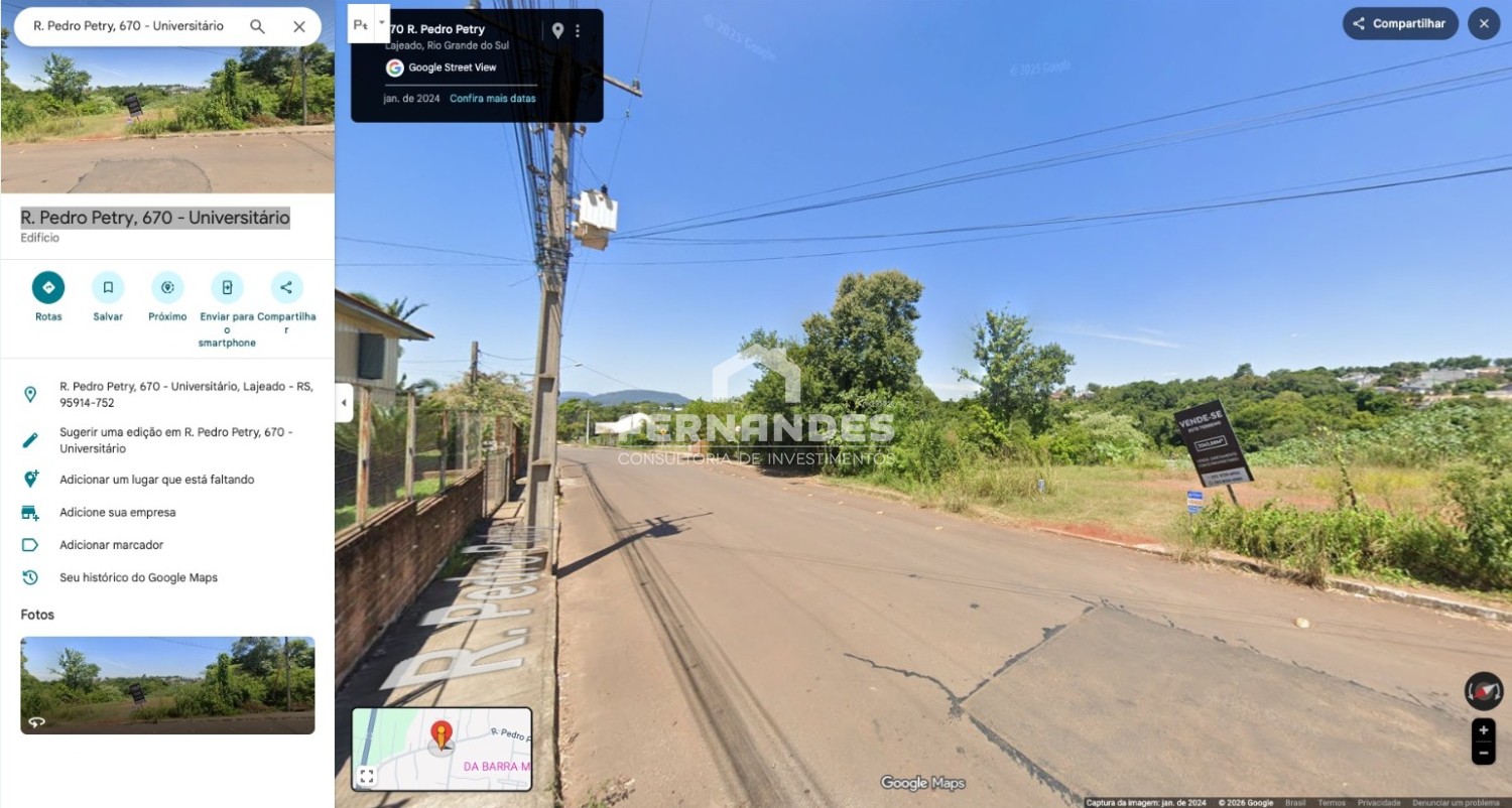 Descrição › O terreno localizado no bairro Universitário, em Lajeado/RS, possui uma área total de 2063,88 m², com uma área de app averbada de 842,44m². Ideal para quem busca um espaço amplo e bem localizado para construir seu projeto dos sonhos. Entre em contato conosco e saiba mais sobre essa excelente oportunidade de investimento.
